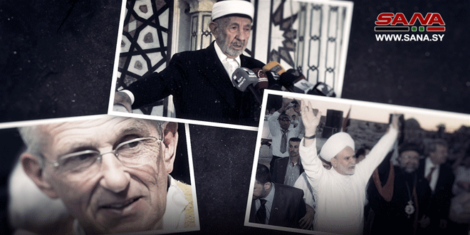لم يكن الدين ورجالاته طيلة عقد الحرب الإرهابية المرير في سورية بمنأى عن دائرة النار المشتعلة بفتيل حقد صانعيها وداعميها فكان علماء الدين ممن نصروا الحق بعلمهم ونبذوا الفتنة بفكرهم وتصدوا للتكفير باعتدالهم شهداء الكلمة والحق.