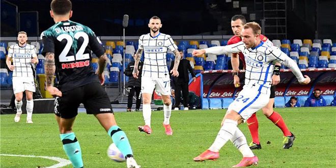 سجل حارس إنتر ميلان سمير هاندانوفينش هدف نابولي بالخطأ في مرماه بالدقيقة 36 فيما أحرز كريستيان إريكسن هدف التعادل لانتر ميلان بالدقيقة الـ 55 من عمر اللقاء.