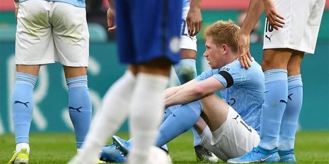 وذكر النادي في بيان على موقعه الرسمي أن دي بروين تعرض لإصابة في الكاحل خلال مباراته ضد تشيلسي السبت الماضي في نصف نهائي كأس الاتحاد الإنكليزي.