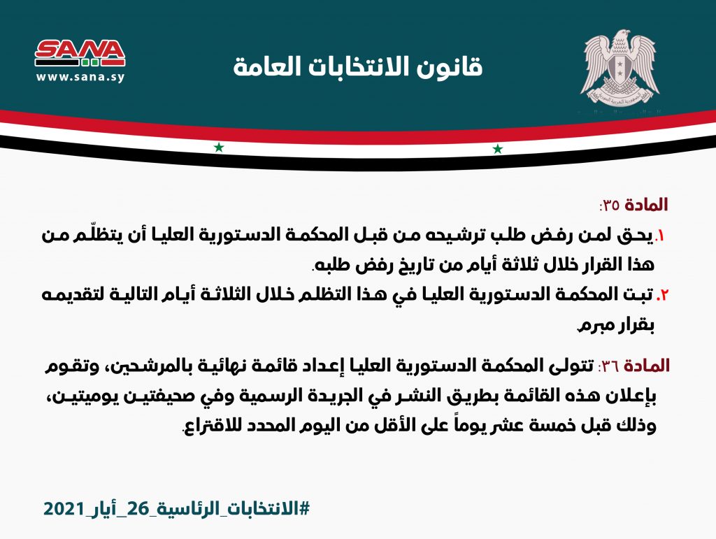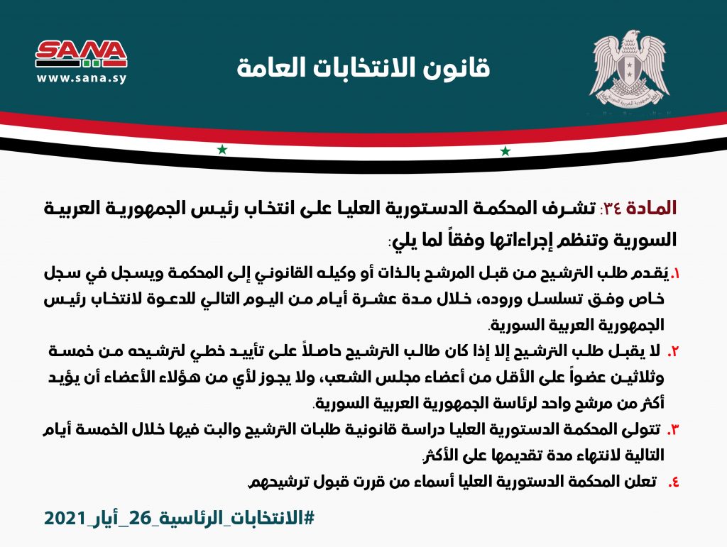 توضح المواد 34 و35 و36 و37 و38 من قانون الانتخابات العامة دور المحكمة الدستورية العليا في الإشراف على انتخاب رئيس الجمهورية وتنظيم إجراءاتها.