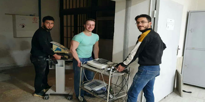 بهمة وإيمان بأهمية العمل التطوعي نفذ عدد من طلاب كلية العلوم الصحية في جامعة البعث حملة تطوعية لنقل أجهزة ومعدات مركز العلاج الفيزيائي إلى المركز الذي خصص له ضمن المشفى الجامعي.