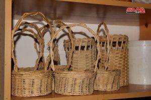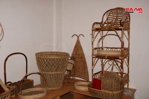 محاطاً بالعديد من قطع الخيزران متقنة التصميم بأشكال وأحجام مختلفة يجلس خوندة في الغرفة الخاصة بالخيزران في مقر جمعية رعاية المكفوفين باللاذقية برفقة أصدقائه يتبادلون الأحاديث بينما تتنقل أنامله بخفة وإتقان تحيك القش المبروم حول عيدان الخيزران لصنع تشكيلة من صناديق الهدايا وسلل الغسيل والفواكه والمهملات وعلب المحارم وغيرها.