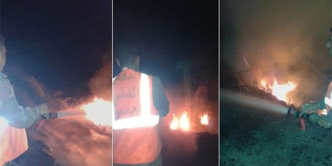 وأضاف أن عناصر الفرع توجهوا فوراً إلى المكان وسيطروا على الحريق قبل أن يمتد لمساحات واسعة مشيراً إلى أن المساحة المحروقة بلغت ثلاثة دونمات.