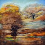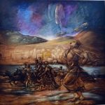 الطالب تميم أوضح أن البحث تضمن تجربة الباحث العلمية والعملية وتناول آليات حضور المكان في اللوحة وظهور البعد التشكيلي للوحة بثلاثة طرق عبر حضور المكان العياني المباشر والمكان كبعد تشكيلي تراثي أو فلكلوري وحضور المكان ببعد تأملي تعبيري تجريدي ورمزي.