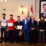 وزير التعليم العالي والبحث العلمي الدكتور بسام إبراهيم أشار في كلمة له خلال حفل التكريم الذي اقيم في قاعة رضا سعيد بجامعة دمشق وشمل 31 طالباً وطالبة مع مدربي الفرق إلى أهمية مشاركة الفرق السورية في المسابقات العربية ما يعكس تميز وإبداع الطالب السوري الذي تحدى ظروف الحرب على سورية والحصار الاقتصادي الجائر بالإرادة والتصميم والاجتهاد للوصول إلى المراكز الأولى في المسابقات نتيجة التدريب المستمر والمتكامل للفرق خلال فترة التحضير.