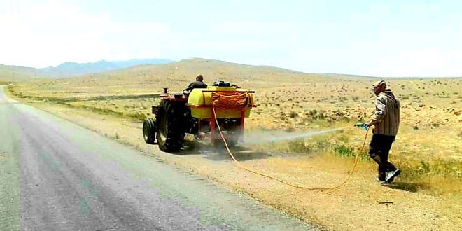 تواصل مصلحة زراعة تدمر مكافحة أسراب الجراد الصحراوي بعد مشاهدة انتشارها ضمن مجموعات غير ثابتة في ريف تدمر باتخاذ جملة من الإجراءات لمنع وصولها إلى المناطق الزراعية والقيام بجولات ميدانية يومية متكررة من أجل مكافحتها مباشرة.