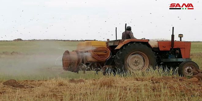 تعمل مديرية الزراعة بالسويداء بالتعاون مع المجتمع المحلي على مكافحة مجموعات من الجراد الصحراوي بعد تجدد ظهورها في مواقع متفرقة من المحافظة.