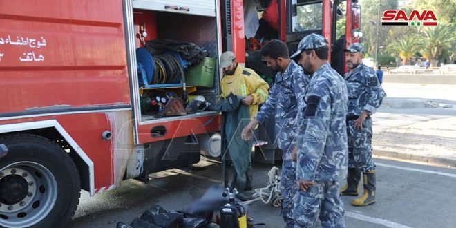 عمليات بحث مكثفة يقوم بها عناصر زمرة الإنقاذ في فوج إطفاء دمشق للعثور على جثمان الطفلة التي غرقت مع شقيقها في مجرى نهر بردى بمنطقة الهامة في دمشق منذ أربعة أيام حيث تمكنوا أمس من انتشال جثمان شقيقها وعمره 8 سنوات.