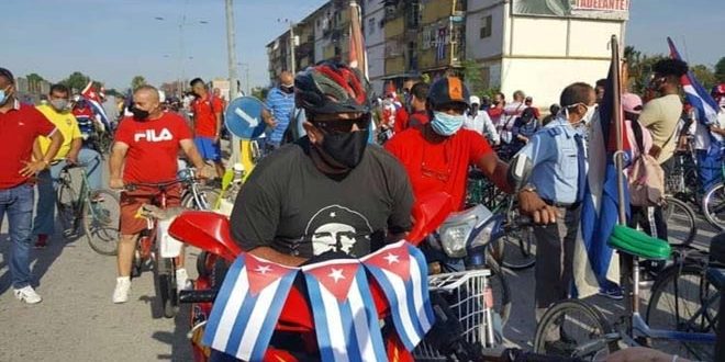وذكرت فرانس برس أن سكان مدينة سانتا كلارا تظاهروا اليوم رافعين أعلام كوبا ولافتات تندد بسياسة واشنطن حيال بلادهم وتطالب برفع الحصار كتب على إحداها “يسقط الحصار” وأخرى “صفاً واحداً من أجل كوبا” وثالثة “الوطن أو الموت”.