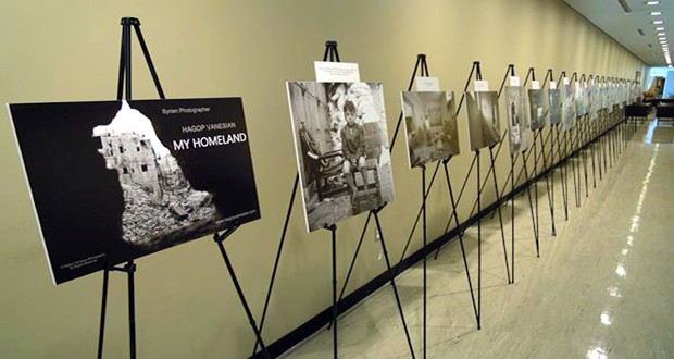 مزج وانيسيان بين الابداع والهدف وجعل من عدسة كاميرته عينا لكل العالم ليرى حال وطنه قبل وبعد أن عاثت به يد الإرهاب والإجرام في معرض للتصوير الضوئي أقامه في مبنى الأمم المتحدة بعنوان “موطني” يوثق آثار الإرهاب على مدينة حلب ليشير في حديث لسانا إلى أن “هدف المعرض جاء لتعريف العالم بمدى معاناة الشعب السوري ومخاطبة شعوبه بطريقة إنسانية توثق ما تعرض له السوريون من حرب استهدفت وجودهم وإنسانيتهم وحضارتهم”.