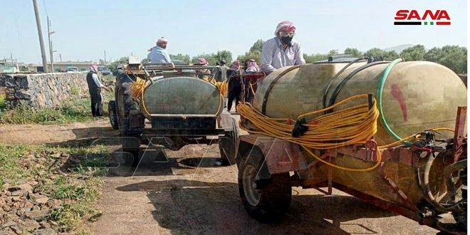 كافحت مديرية الزراعة والإصلاح الزراعي في محافظة القنيطرة أكثر من ألف دونم من المساحات التي شوهدت فيها أسراب من الجراد في القطاع الجنوبي من المحافظة.