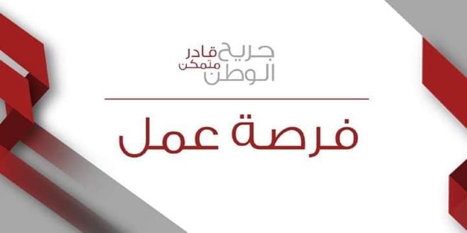 أعلن مشروع جريح الوطن عن تأمين 400 فرصة عمل لجرحى الجيش المسرحين والقوات الرديفة بالتعاون مع شركة خدمات برمجية ضمن مشروع خدمي في مدينة دمشق.