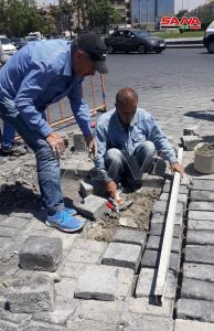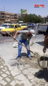وتقوم ورشات المديرية وفق قطيفاني بأعمال صيانة الهبوطات في حجر اللبون المتضرر في ساحة العباسيين من فك الحجر وتنظيفه ورصفه من جديد.