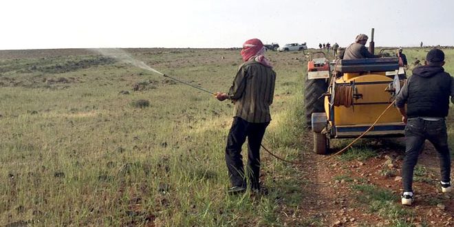 وذكر معاون مدير الزراعة بالسويداء المهندس علاء شهيب في تصريح لمراسل سانا أن المكافحة جاءت بعد متابعة وجود الجراد مساء أمس وشملت مساحة 400 دونم في أراض خربا و80 دونماً في أراضي عرمان لافتاً إلى أن فرق الرصد بالمديرية مستمرة بمراقبة حركة الجراد ليتم التعامل مع المجموعات التي تظهر بالوقت المناسب مع توفير الأدوية اللازمة والجرارات للقيام بعمليات المكافحة.