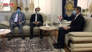 بحث وزير النفط والثروة المعدنية المهندس بسام طعمة مع وزير النفط العراقي إحسان عبد الجبار إسماعيل تعزيز التعاون المشترك بين سورية والعراق في قطاعات النفط والطاقة والتدريب وتبادل الخبرات.