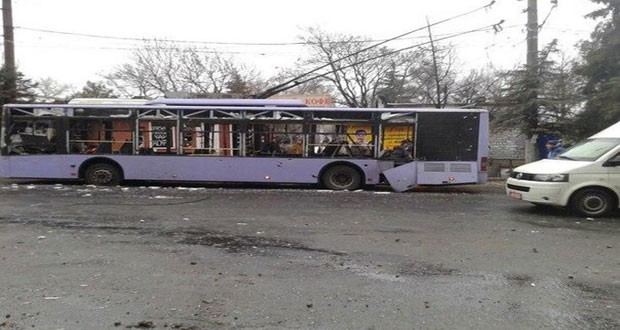 وذكرت وكالة أنباء دونيتسك أنه حسب المعلومات الأولية فإن القذيفة أطلقت من حافلة صغيرة باستخدام راجمة قذائف أسفر سقوطها أيضا عن إلحاق أضرار كبيرة بمبنى مكون من 4 طوابق وحافلة وإحراق سيارة.