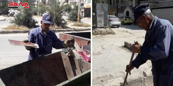 من ناحيته أعرب رئيس اللجنة النقابية في مديرية النظافة عبد العزيز السبسبي عن حرص اللجنة على تأمين بيئة العمل المناسبة لهذه الشريحة العمالية كأقل واجب تجاهها لما يبذله أفرادها من جهود كبيرة لافتاً إلى أنه يجري تقديم اللباس والوجبة الغذائية اليومية لعمال النظافة فضلاً عن القفازات والكمامات كإجراءات احترازية للوقاية من الأمراض وخاصة فيروس كورونا.