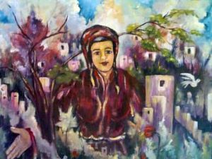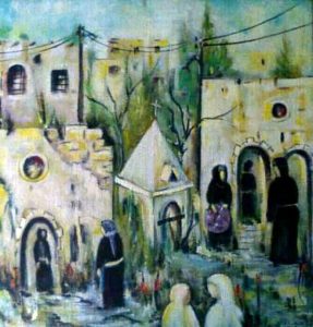 ووصف نجار اللوحة بكل عناصرها الطبيعية والإنسانية بالكائن الحي فأحياناً تظهر البلدة كجسد يتغذى من شريان في باطن الأرض أو شجرة عميقة الجذور أو كحضن دافئ لأم تحنو فوق أطفالها.