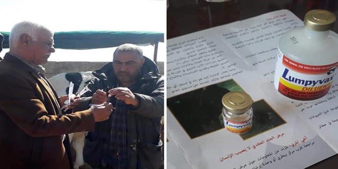 وذكر الدكتور عاطف العاسمي رئيس دائرة الصحة الحيوانية بتصريح لمراسل سانا أن التحصينات شملت أمراض الحمى القلاعية والجدري والانتروكيسميا للأغنام والماعز والتهاب الجلد الكتيل والحمى القلاعية والبروسيلا للأبقار والجمرة الخبيثة والباستوريلا والبروسيلا للأغنام مضيفاً: إن كوادر الدائرة تقوم بشكل مستمر بجولات ميدانية على المنشآت الحيوانية المنتشرة في المحافظة من مزارع دواجن وأبقار وأغنام للكشف على الحيوانات الموجودة فيها وتشخيص الأمراض التي تصيبها ومعالجتها حال اكتشافها.