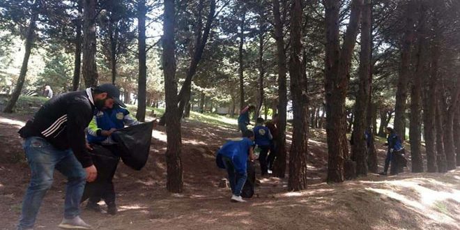 تحت شعار “متطوعون من أجل الوطن” نفذ 50 شاباً وشابة من رابطة شين الشبيبية حملة تنظيف تطوعية في غابة جبل الخضر بقرية شين في ريف حمص الغربي.
