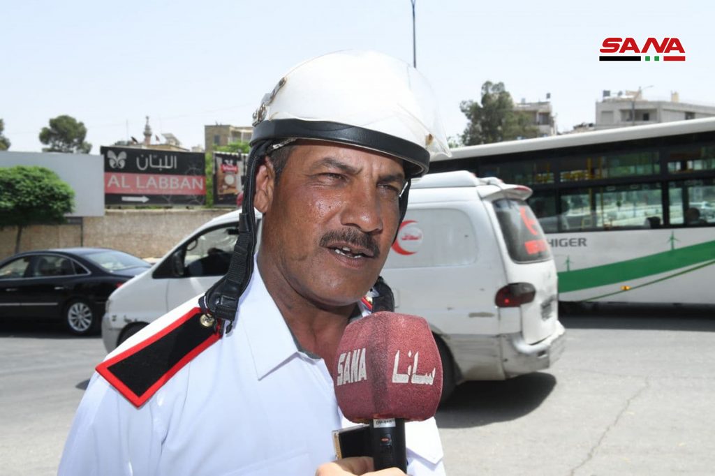 وفي حي المحافظة يقف المساعد أول عزيز المحمد في النقطة المرورية لتقاطع نقابة المهندسين ليواصل تأدية واجبه بعد الإصابة التي لحقت به أثناء العمل فيقول: أثناء قيامي بتنظيم حركة السير خلال شهر رمضان الماضي تعرضت لحادث صدم من إحدى السيارات نتيجة عدم انتباه السائق ما تسبب بحدوث كسور بالفخذ واليد وتم على إثرها إسعافي إلى المشفى وتلقي العلاج وزرع صفائح معدنية وجبيرة جبس وتغيبي أكثر من ستة أشهر عن العمل وبعد أن شفيت عدت لعملي الذي أحب رغم إمكانية حصولي على عمل إداري إلا أنني آثرت متابعة واجبي كشرطي مرور يساعد الناس.