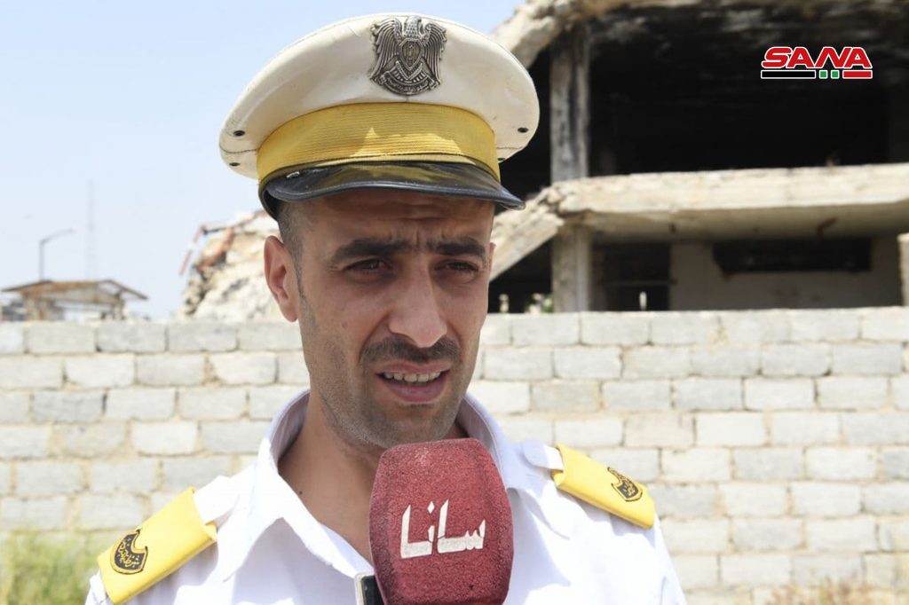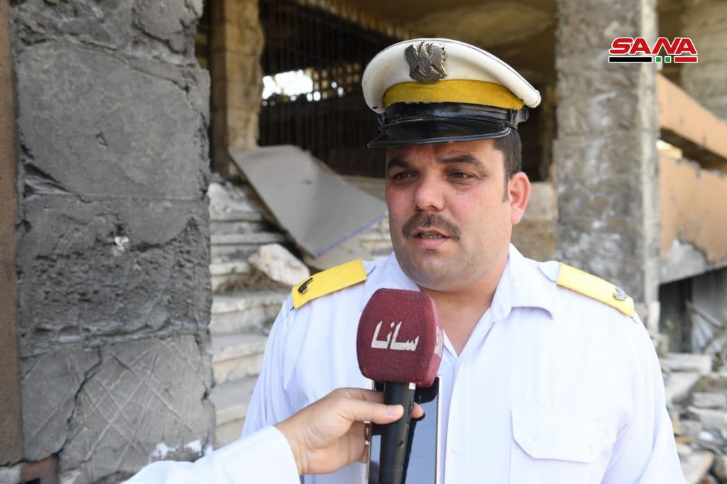 ويعود الشرطي عبد الكريم الدالي بذاكرته خمس سنوات وهو يقف بين أنقاض التفجير الذي استهدف فرع المرور القديم على يد الإرهاب حيث يقول: كنا في هذا المبنى عام 2016 وكانت التنظيمات الإرهابية تحاصرنا من أحياء العقبة وباب أنطاكية وسوق الهال وكان القناصون يعتلون أسطح الأبنية لرصدنا.