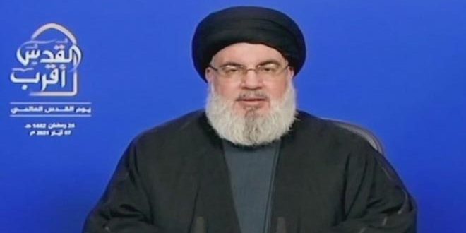 واعتبر السيد نصر الله أن هبة القدس وتفاعل جميع الفلسطينيين معها من العوامل الإيجابية التي تتزامن مع مناسبة إحياء يوم القدس العالمي مشيراً إلى أن الفلسطينيين يؤكدون بذلك تمسكهم بحقوقهم وعدم تخليهم عن أي منها وإفشال ما تسمى “صفقة القرن”.
