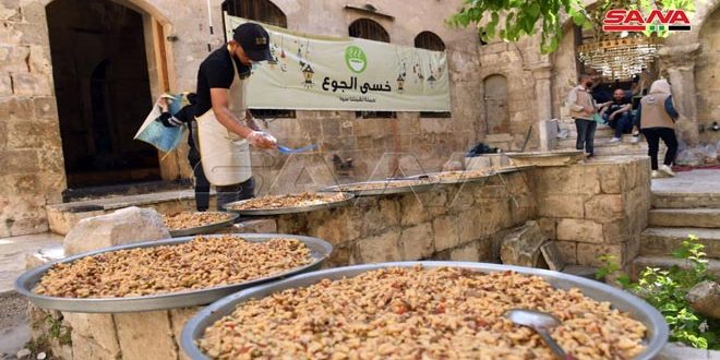 تواصل حملة لقمتنا سوا وتحت عنوان “خسى الجوع” التي تنظمها جمعية ساعد بالتعاون مع مبادرة شهيق وزفير ومديرية أوقاف حلب وعدد من الفعاليات الأهلية والمتطوعين فعالياتها بإعداد الطعام وتوزيع وجبات الإفطار على الصائمين من الأسر المحتاجة بواقع أربعة آلاف وجبة يوميا.
