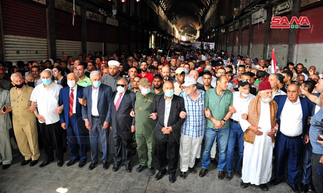 تحت عنوان “القدس أقرب” انطلقت في دمشق اليوم مسيرة إحياء ليوم القدس العالمي من مدخل سوق الحميدية باتجاه الجامع الأموي بمشاركة شعبية واسعة.
