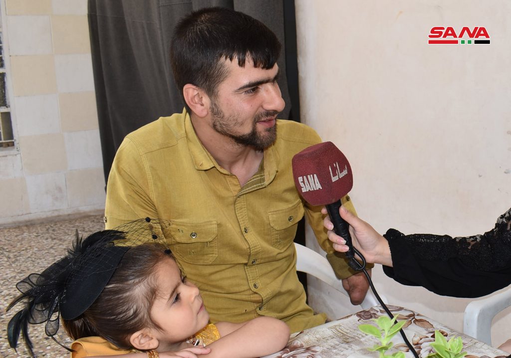 كاميرا سانا زارت بعضاً من جرحى الجيش العربي السوري من حاملي بطاقة جريح الوطن المصابين بنسبة عجز كلي أثناء الحرب الإرهابية على سورية حيث بين الجريح عمار علي الباشا أن إصابته خلال المعارك مع العصابات الإرهابية المسلحة في ريف حلب عام 2015 أدت إلى بتر يديه ويقول: رغم إصابتي منذ 5 سنوات ما زلت أعتمد على نفسي في جميع الأعمال وأعيش حياتي بشكل طبيعي وأمارس أعمالي بكل نشاط وتفاؤل.