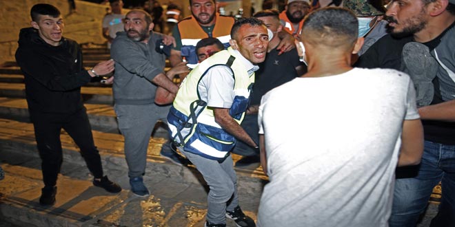 أصيب أكثر من 205 فلسطينيين واعتقل أخرون جراء اقتحام قوات الاحتلال الإسرائيلي مساء اليوم باحات المسجد الأقصى المبارك.