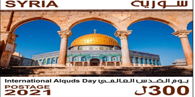 أصدرت المؤسسة السورية للبريد طابعاً بريدياً تذكارياً مع بطاقة بمناسبة يوم القدس العالمي الذي يصادف يوم الجمعة اﻷخيرة من شهر رمضان المبارك.