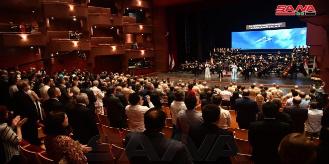 شارك فنانون وموسيقيون سوريون أبناء الشعب الروسي فرحتهم بالذكرى السادسة والسبعين للنصر على النازية خلال احتفال مركزي استضافه مسرح الأوبرا بدار الأسد للثقافة والفنون وسط حضور شخصيات رسمية ومثقفين وعدد من أبناء الجالية الروسية في سورية.