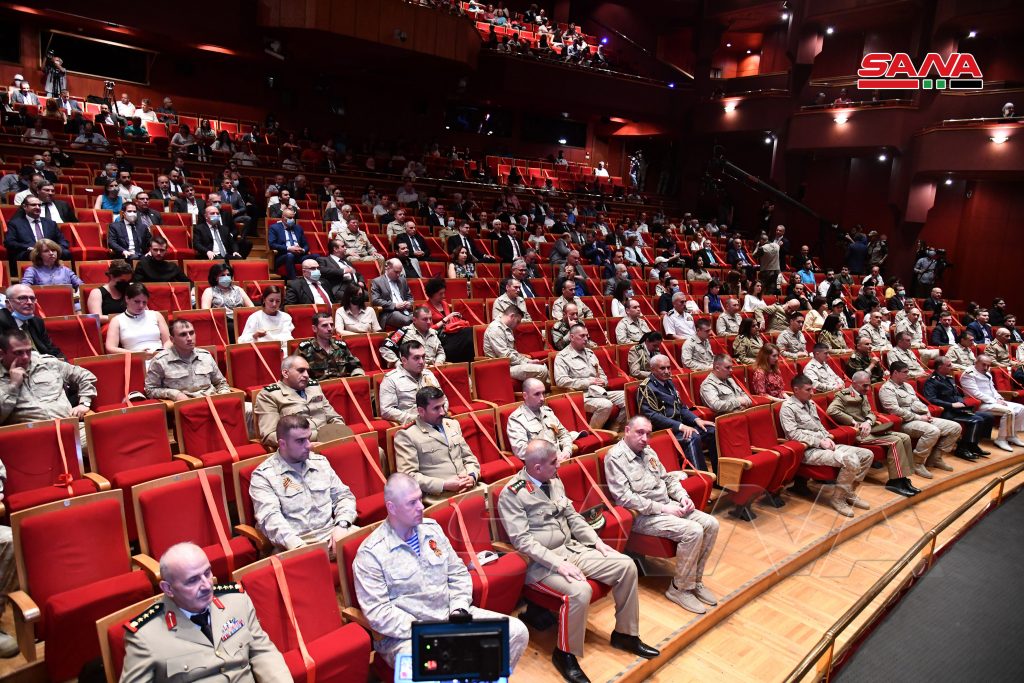 حضر الاحتفال وزيرا شؤون رئاسة الجمهورية منصور عزام والسياحة المهندس محمد رامي مرتيني والدكتور مهدي دخل الله عضو القيادة المركزية لحزب البعث العربي الاشتراكي وعدد من نواب الوزراء ومعاونيهم والمسؤولين وعدد من ضباط الجيش العربي السوري والجيش الروسي وعدد من رؤساء المنظمات والاتحادات والنقابات المهنية وأعضاء السلك الدبلوماسي المعتمدين بدمشق.