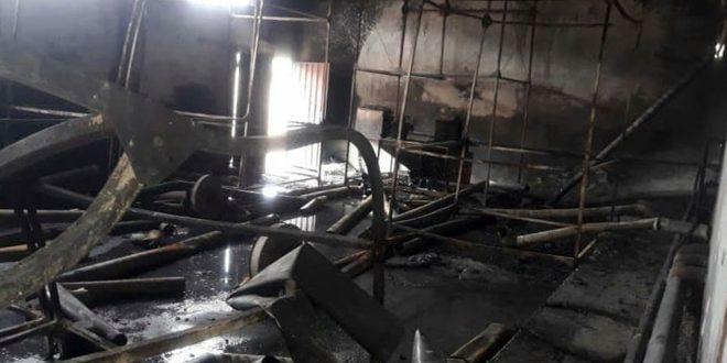 وأفاد الرائد عبد الكريم جلودي رئيس فوج إطفاء حسياء في تصريح لمراسل سانا بأن حريقاً اندلع بإحدى صالات الإنتاج بمعمل الفلين وعلى الفور تحرك عناصر الفوج إلى المكان وعملوا على محاصرة النيران منعاً من انتشارها ومن ثم تمت السيطرة على الحريق وإخماده والقيام بعمليات التبريد.