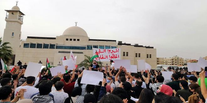 تظاهر مئات الأردنيين قرب سفارة كيان الاحتلال الإسرائيلي في العاصمة عمان احتجاجا على اعتداءات الاحتلال على مدينة القدس وخاصة حي الشيخ جراح مطالبين بإغلاق السفارة وإلغاء معاهدة السلام مع كيان الاحتلال.