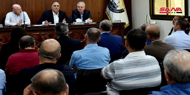 تركز اجتماع وزير التجارة الداخلية وحماية المستهلك طلال البرازي مع غرفتي التجارة والصناعة بحمص وممثلين من غرف الزراعة واتحاد الحرفيين حول آلية التسعير وفق مواد وبنود المرسوم التشريعي رقم 8.