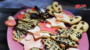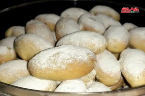 بدورها لفتت السيدة فاطمة عكو إلى مقادير وطريقة تحضير أشهر الحلويات التي تصنع في المنازل كالمعمول بالعجوة المؤلف من طحين وسمنة وسكر والتمر المطحون حيث يدعك الطحين مع السمنة وتسمى مرحلة “البس” وتترك لنصف ساعة وبعدها يتم دعكها مرة ثانية ويحتاج كل 100غ طحين إلى 400 غ سكر و300غ ماء وتوضع المنكهات حسب الرغبة كالمحلب والشمرة أو ماء الزهر وبعد نصف ساعة تأتي مرحلة التقطيع ويكون التمر معجوناً ومضافاً له الزبدة وماء الزهر ويحشى المعمول في القوالب ويصف في الصواني ليوضع بالفرن على درجة حرارة عالية لكي لا تجف العجينة.