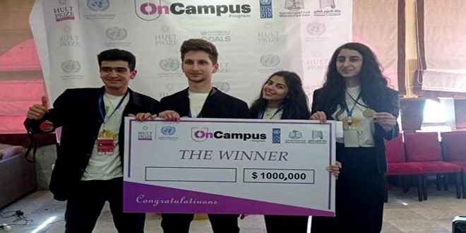 وقال: “تقدمت بطلب عبر الانترنت للاشتراك بالمسابقة ثم قمت بالتنسيق مع فرع اتحاد الطلبة بطرطوس الذي قدم لنا كل الدعم بالتعاون مع برنامج الأمم المتحدة الإنمائي “يو ان دي بي” وجمعية “ايد بايد” وجمعية “فضا” التنموية التي مولت دراسات المشاريع والتدريبات التي تلقتها الفرق المشكلة من الجامعة استعدادا للمشاركة بهذه المسابقة”.