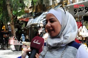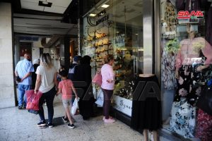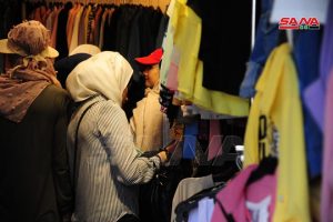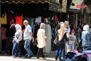 تشهد أسواق الألبسة والأحذية والإكسسوارات بدمشق ازدحاماً ملحوظاً في الأيام الأخيرة من شهر رمضان المبارك وهي حركة معتادة لمعظم الناس في كل عام قبل حلول أيام عيد الفطر لشراء ما يلزمهم من احتياجات لهم ولأطفالهم ما يخلق أجواء من البهجة والفرح بقدوم العيد مهما كانت الظروف.