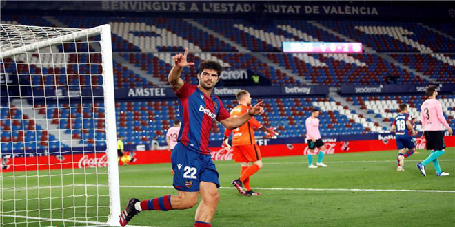 أهدر برشلونة تقدمه مرتين ليتعادل 3-3 مع مضيفه ليفانتي اليوم في ضربة قاتلة محتملة لفرصه في الفوز بلقب دوري الدرجة الأولى الإسباني لكرة القدم.