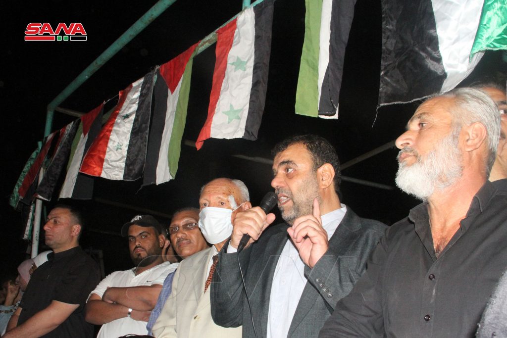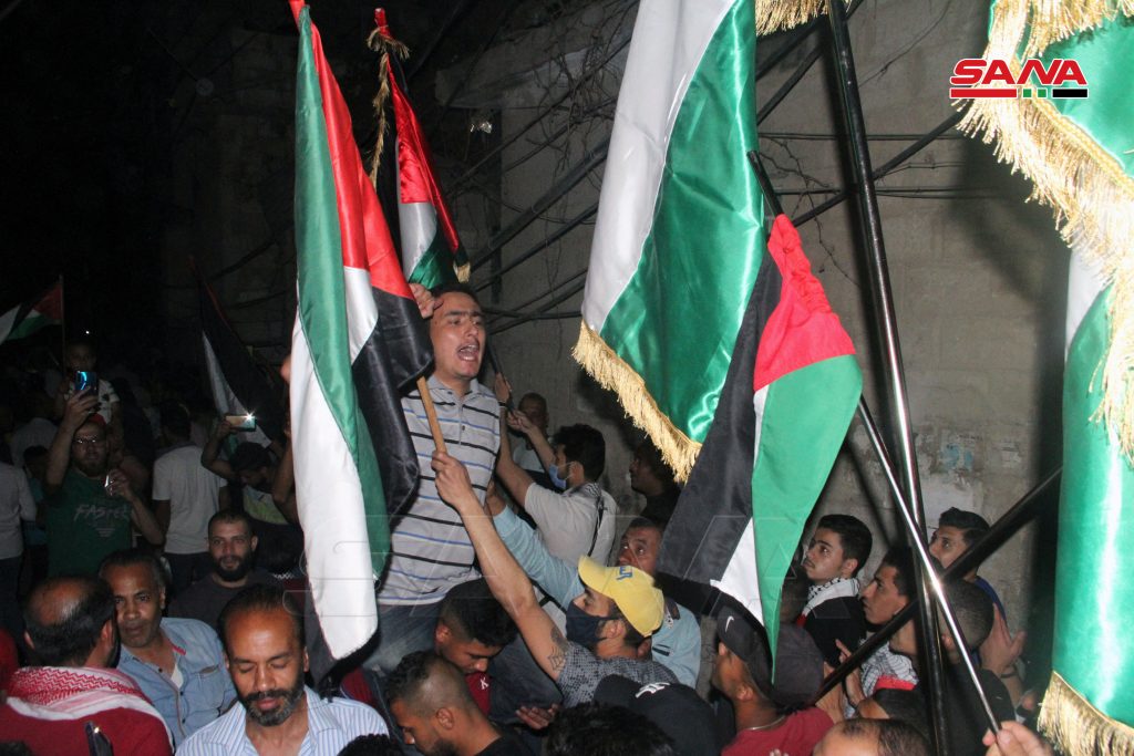 وأكد مسؤول حركة الجهاد الفلسطينية في سورية إسماعيل السنداوي أن المقاومة الفلسطينية اليوم من خلال الصواريخ التي أطلقتها على مستوطنات الاحتلال تؤكد أن الشعب الفلسطيني لن يسمح للاحتلال الإسرائيلي بالاستفراد بالقدس والاعتداء على المعتكفين بالمسجد الأقصى وهي رسالة واضحة وحدت الشعب الفلسطيني.