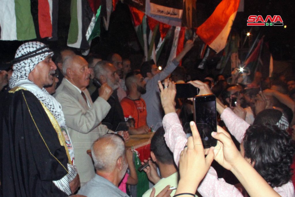 نظمت اللجان الأهلية والمنظمات الشعبية الفلسطينية وأهالي مخيم جرمانا بريف دمشق مساء اليوم مسيرة حاشدة دعماً للشعب الفلسطيني في مواجهة غطرسة الاحتلال الصهيوني.