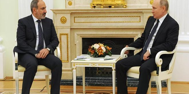 بحث الرئيس الروسي فلاديمير بوتين ورئيس الوزراء الأرميني نيكول باشينيان في اتصال هاتفي اليوم الأوضاع على الحدود الأرمينية الأذربيجانية واتفقا على ضرورة التقيد الصارم بوقف إطلاق النار في اقليم قره باغ.