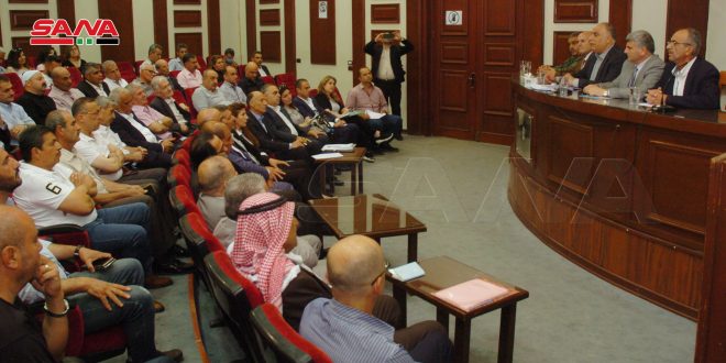 ركز اجتماع وزير التجارة الداخلية وحماية المستهلك طلال البرازي مع ممثلي غرفة تجارة وصناعة السويداء وفعاليات تجارية واقتصادية فيها حول توضيح آلية تطبيق المرسوم رقم 8 الخاص بحماية المستهلك وأهدافه في تنظيم الأسواق وحركة البيع والشراء.