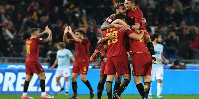 فاز روما اليوم على ضيفه لاتسيو بهدفين مقابل لا شيء في الجولة 37 من الدوري الإيطالي لكرة القدم.