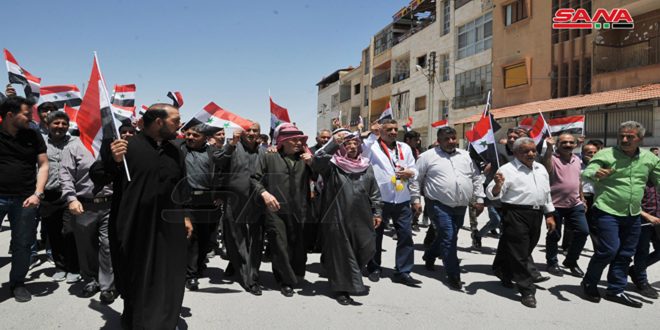 وأشار عدد من وجهاء قرى وبلدات القلمون في كلمات لهم ضمن فعاليات الخيمة إلى أن سورية انتصرت على الإرهاب وحاربت وضحت وستستمر بإنجاح كل قراراتها السيادية والمؤسساتية عبر التشارك والتعاضد والدعم بين جميع أبنائها.