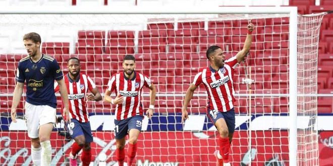 تغلب فريق أتلتيكو مدريد على مضيفه اوساسونا بهدفين مقابل هدف واحد في المرحلة الـ 33 من الدوري الإسباني لكرة القدم “الليغا”.