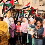 وجاب المشاركون في المسيرة شوارع المخيم رافعين لافتات ومرددين هتافات تعبر عن التضامن مع الشعب الفلسطيني في مواجهة العدوان الإسرائيلي الوحشي الذي يتعرض له منها “نموت وتحيا فلسطين” و”بالروح بالدم نفديك يا أقصى” كما رددوا هتافات تندد بوحشية وهمجية الاحتلال واستهدافه الفلسطينيين العزل ولا سيما الأطفال والنساء في انتهاك سافر لكل المواثيق والأعراف الدولية.