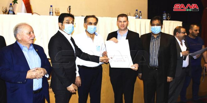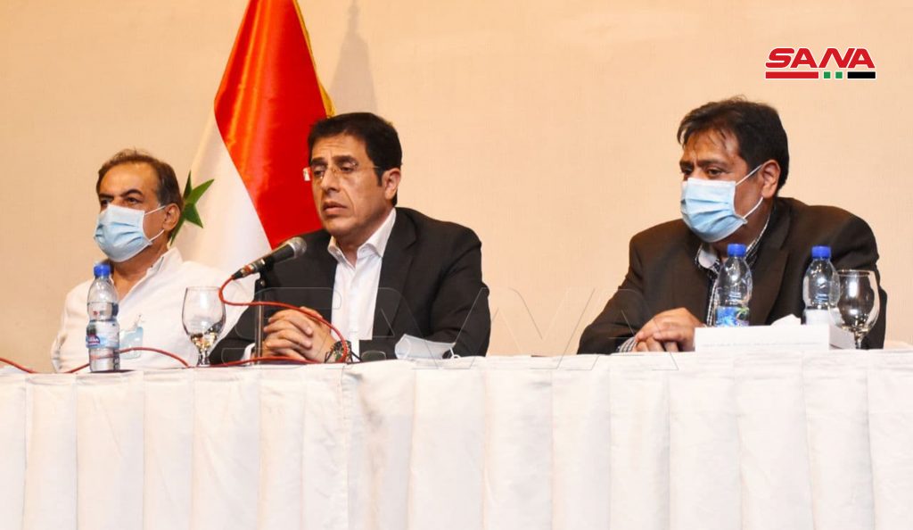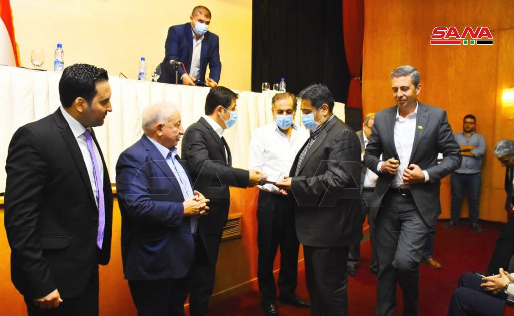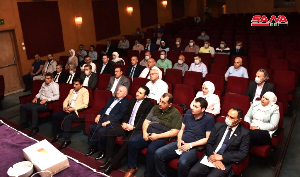 وتم خلال اللقاء تكريم الكوادر والشركات المساهمة بإنجاز إعادة تأهيل مشفى العيون الذي تضرر بفعل الإرهاب والذي سيوضع بالخدمة غداً.